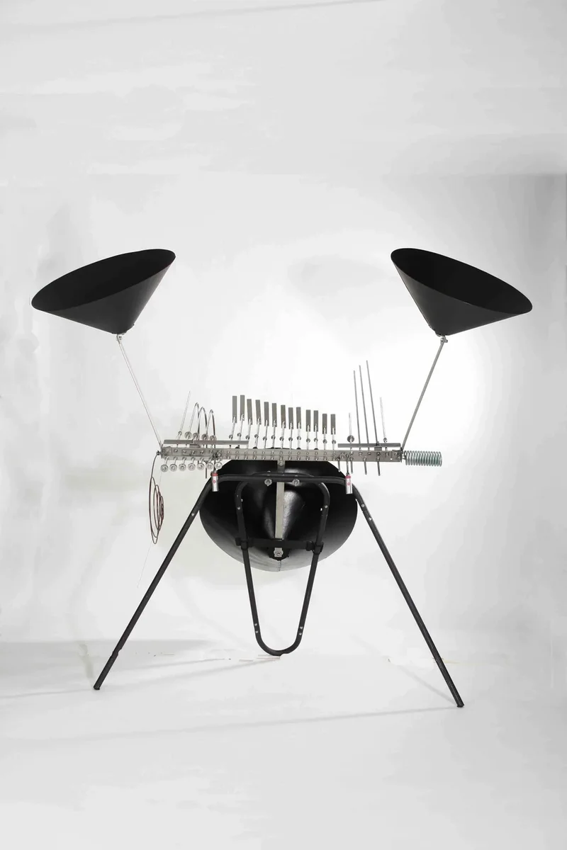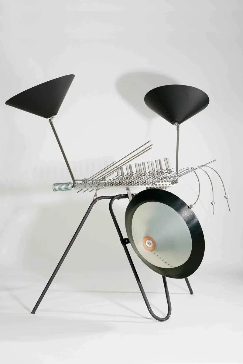 Réalisé avec eux au sein de leur atelier, ce clavier a permis de mener une étude acoustique en référence au changement de matériau de l’élément vibrant, qui se trouve être en acier inoxydable et non plus en acier ordinaire. Un clavier chromatique de 1 octave est adjoint au centre. La particularité réside en ce qu'il soit le premier clavier entièrement conçu en acier inoxydable, précédent un Zagreb percussion réalisé pour Mme Cathy Tardieu et finalement la réactualisation de l’instrumentarium pédagogique. L'esthétique du pied, réalisé en tube d'aluminium, est empruntée aux formes pliées des sculptures-mobiliers développées par François BASCHET. Il est réalisé sur la même plieuse conçue par ce dernier : un cric de camion monté sur une table de style baroque.